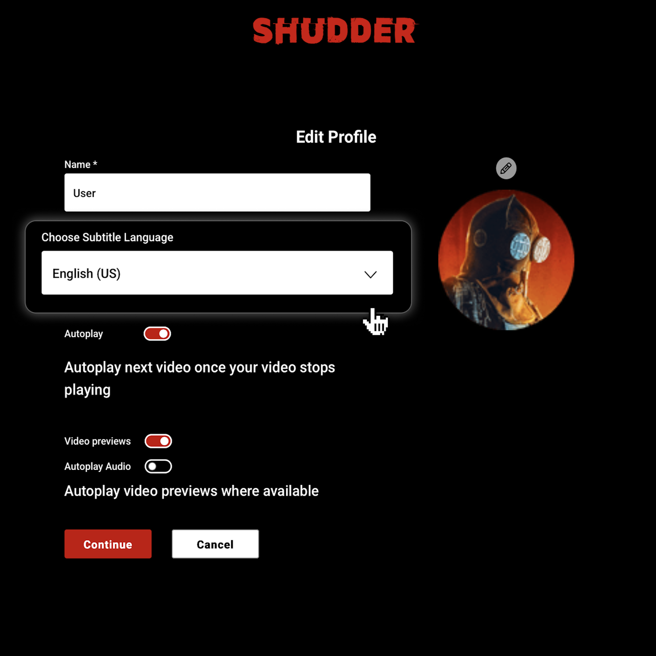 You can also manage the default subtitle setting for each profile on the Shudder website and on the Shudder app for streaming devices & smart TVs: